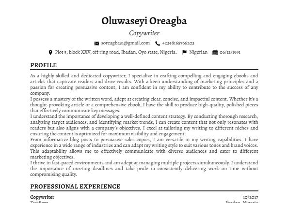 I'm Oluwaseyi, a dedicated content writer and copywriter passionate about transforming ideas into engaging narratives. My journey with words began at an early age, and over time, I've honed my skills to craft compelling stories and persuasive messages.